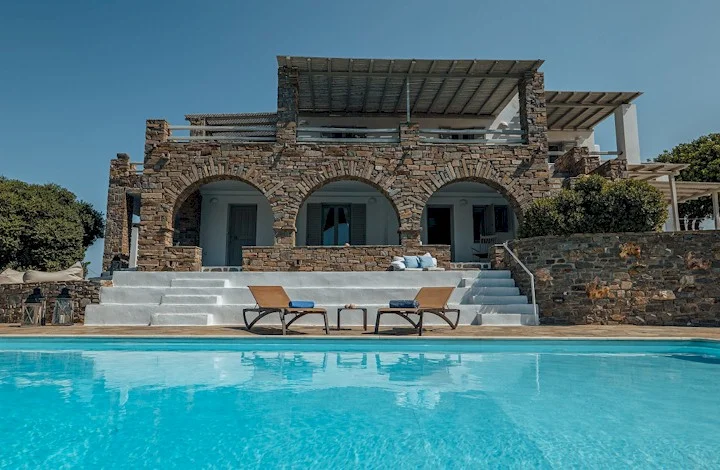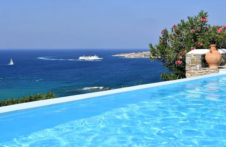 There are 3 swimming pools which together with spacious verandas, sitting and dining areas overlook the magnificent blue Aegean and its islands, Antiparos, Sifnos, Syros, Serifos, Andros, Tinos and of course the beautiful landscape of the island itself.