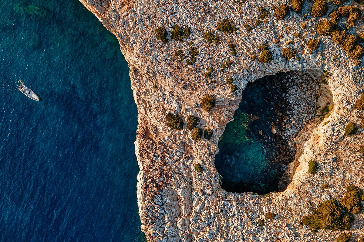 ANEMOS, meaning the wind, is an independent modern retreat of 70 sq.m. in two levels and accommodates 2 guests in a spacious living room with open plan fully equipped kitchen and guest bathroom with shower. In the lower level there is the master bedroom with en suite facilities.